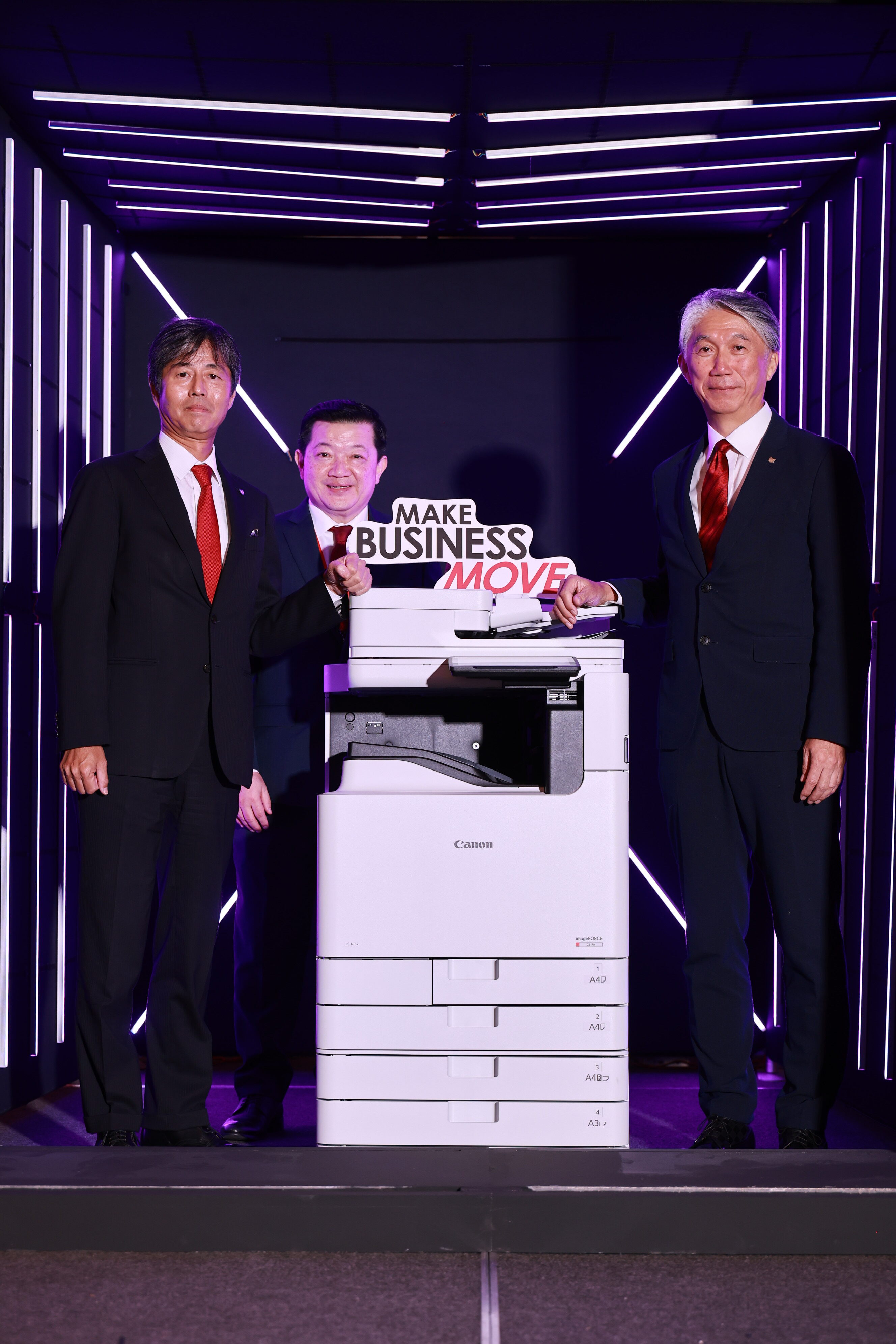 (from left to right) Masato Yoshiie, President & CEO of Canon Marketing Malaysia, Vincent Low, Head of Business Imaging Solution Centre of Canon Marketing Malaysia and Norihiro Katagiri, Senior Vice President of Canon Singapore, officiating the launch of Canon’s new imageFORCE multi-function device (MFD) series.