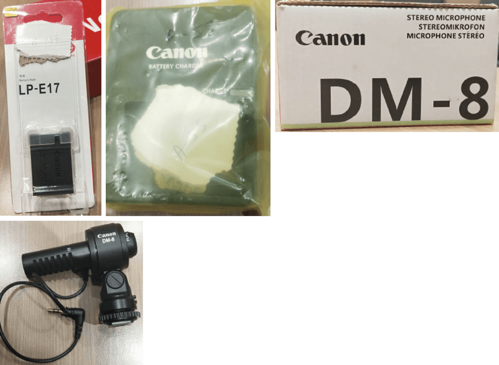 29 units of counterfeit Canon battery, 1 unit of counterfeit Canon battery charger, 1 unit of counterfeit Canon battery grip, 50 units of counterfeit Canon lens cap and 7 units of counterfeit Canon camera bag were seized by the police during a market sweep action.