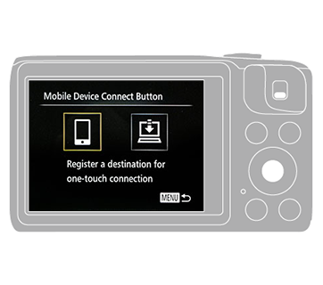 ] icon and press [Func. Set] under the Mobile Device Connection screen - Activate your mobile device’s Wi-Fi, then select and enter the camera’s SSID and password (displayed on the camera’s connection screen)