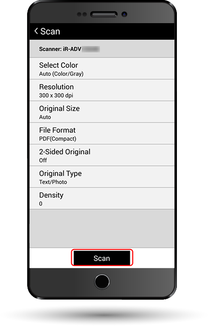 For imageRUNNER ADVANCE using the function, scan settings must be first configured on the mobile terminal followed by the Canon device.