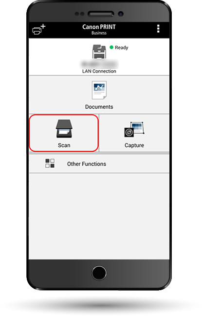 Note: This step may not be applicable to all models. - In the Canon PRINT Business app home screen, tap [Scan]