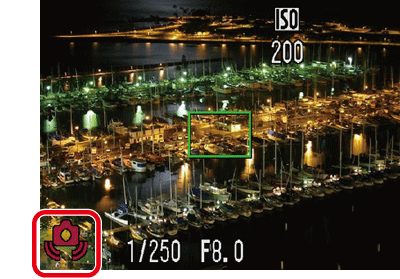 1. When pressing the Shutter Button halfway, check the icons displayed on the LCD monitor. The [Camera Shake Warning] (
