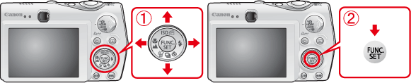 To select an item displayed on the camera’s LCD monitor, press the camera’s buttons (