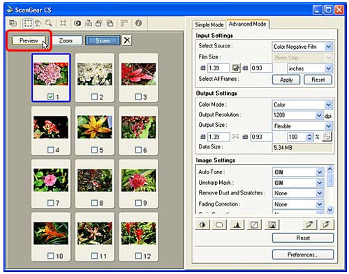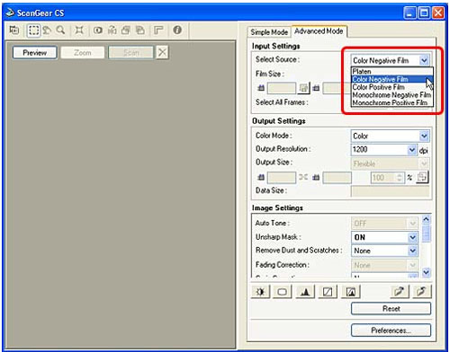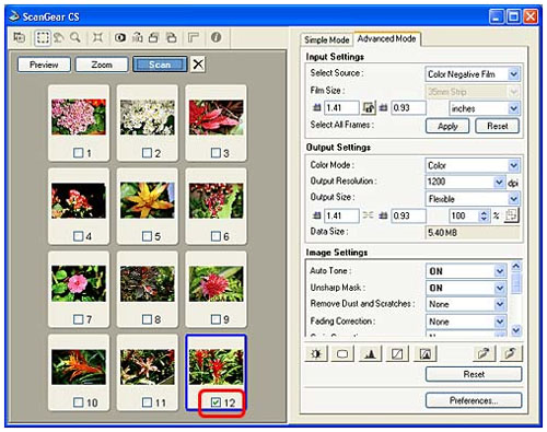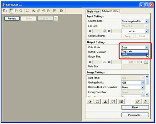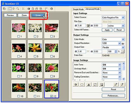 5.If ScanGear CS is in the Simple Mode, click the [Advanced Mode] tab to display the Advanced Mode window
