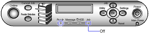 - If you turn the printer OFF when the Job indicator is on, all the print data remaining in the printer memory will be erased. If there is any necessary print data remaining in the printer, wait until it is output, or press [Reset] in the offline state and then select FORM FEED to output the data before turning the printer OFF. (See "Chapter 2 Using the Printer," in User's Guide in the CD-ROM supplied with the printer.)