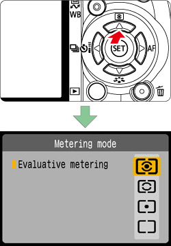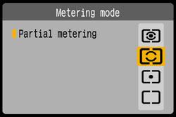 | Evaluative metering | ![]() | ![]() | This is an all-around metering mode suited for portraits and even backlit subjects. The camera sets the exposure automatically to suit the scene. This metering mode is set automatically in the Basic Zone modes. |