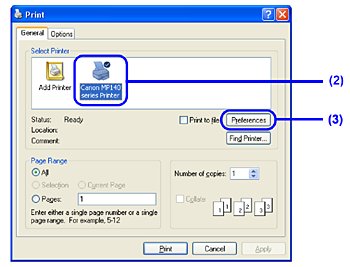(3) Click Preferences (or Properties).