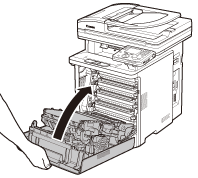 If you are using the stack bypass tray, close it before opening the front cover. Open the front cover gently holding the handle (A).