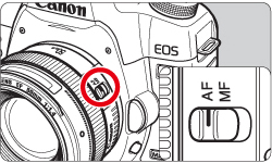 If you want to achieve precise focusing, set the lens focus mode switch to <MF>, magnify the image, and focus manually.