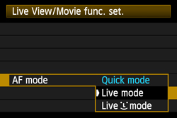 1. Once you have proceeded up to Step 9 of "STEP I. Preparing for Live View Shooting", turn the <Quick Control Dial> to select [AF mode].