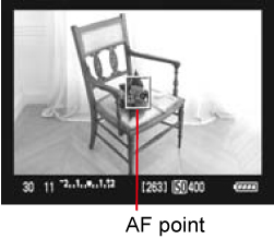 > (Live View shooting) button to display the Live View image. The following AF point appears.