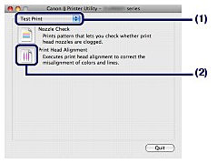 (1) Select Test Print in the pop-up menu.