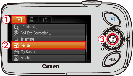 the resolution after resizing will appear.After you select the resolution you want to resize, press the <FUNC./SET> (
