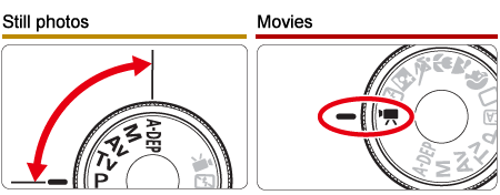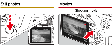 Please note that some shooting procedures differ between still photos and movies. To shoot still photos, please refer to the instructions for still photos, and to shoot movies, please refer to the instructions for movies.