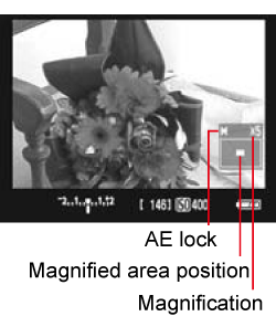 > (Magnifying) button to check the image composition in normal view.After focus is achieved by following the instructions in Part III 1, 2, 3, or 4, start shooting.