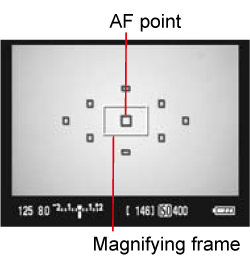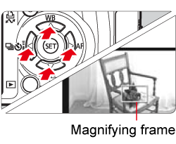 6. Press the <Cross Keys> to move the magnifying frame to the position where you want to focus.