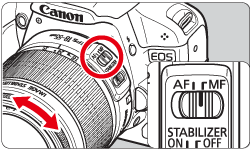 3. Once you have proceeded up to Step 2 of Part I, set the lens focus mode switch to <MF>.