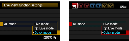 - To shoot movies, select [AF mode], and then press the <SET> button.