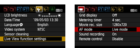 Changing the AF Mode to Use the Live View Function to Shoot Still Photos and Movies (EOS REBEL T1i/EOS 500D)