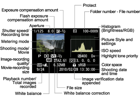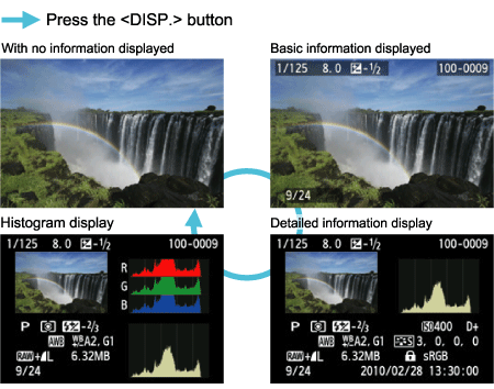 How do I display shooting infomation during playback? (EOS REBEL T2i / EOS 550D)