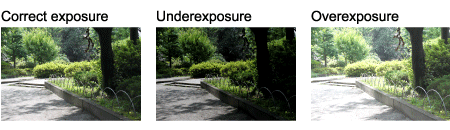 Exposure adjustments are a process in which the amount of light exposed to an image sensor is adjusted by the aperture value or the shutter speed to accommodate different levels of subject brightness. Correct exposure refers to optimal exposure for a subject, whereas underexposure is insufficient exposure and overexposure is excessive exposure.