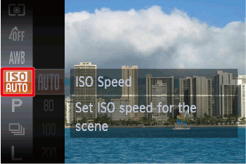 ) appears when you press the <Shutter Button> halfway, it is recommended to gradually raise the ISO speed in increments such as [ISO 80], [ISO 100], etc., and then set the [ISO Speed] when the camera shake warning icon (
