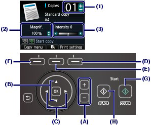 Copy on the HOME screen.The Standard copy screen is displayed.
