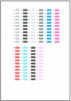 (1) Check the printed patterns and select the number of the pattern in column W that has the least noticeable vertical streaks.