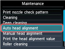 - To print and check the current head position adjustment values, select Print the head alignment value.