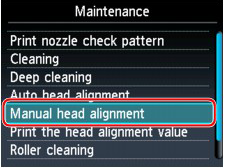 (3) Select Manual head alignment, then touch the OK button.