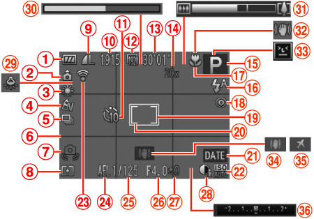 ![]() | Battery level | ![]() | AF frame |