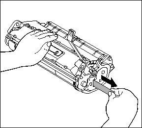 10. Hold the toner cartridge by its handle.