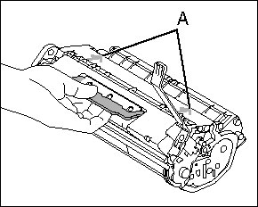 b. Do not open the drum protective shutter on the toner cartridge. Print quality may deteriorate if the drum surface is exposed to light or is damaged.