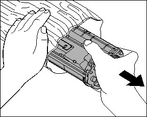 5. Remove the new toner cartridge from the protective material.
