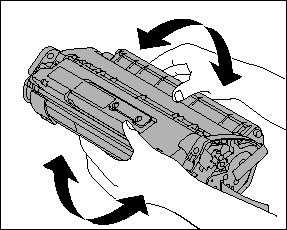 6. Gently rock the toner cartridge 5 or 6 times to distribute toner evenly.