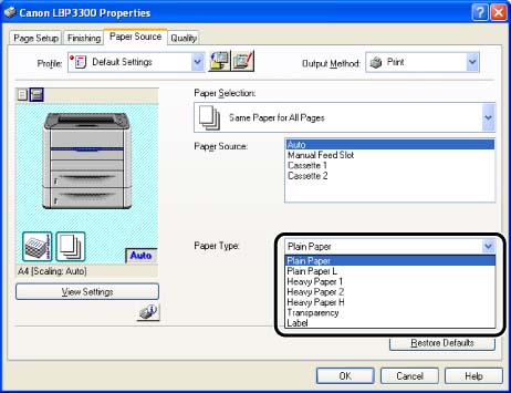 Specify the same setting as the one for [Paper Source], although the setting for [Paper Source] changes to ones such as [First Page] or [Other Pages] when [Paper Selection] is set to other than [Same Paper for All Pages].