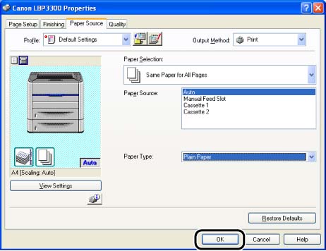 After loading paper in the paper source, configure the printer driver using the following procedure before printing.
