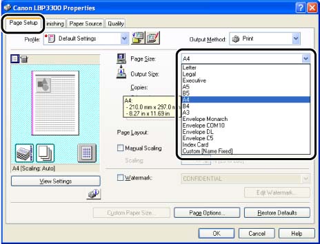 Leave the setting at [Match Page Size] when the paper size specified for [Page Size] and that of the paper loaded in the paper source are the same, since there is no need to change the setting.