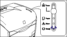 If no abnormalities are found during the self-diagnostic test, the Ready indicator (blue) comes on, and the printer is ready to print.