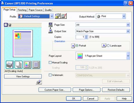 Displaying the [Document Properties] dialog box from the [Printers and Faxes] folder or the [Printers] folder (Windows 2000/XP/Server 2003)