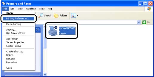 2. Select the icon for this printer, then select [Printing Preferences] from the [File] menu.