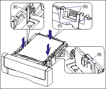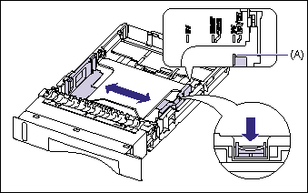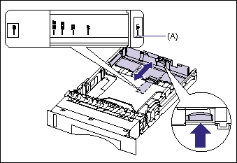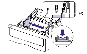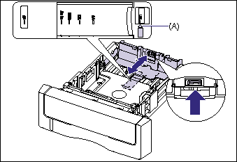 The side paper guides move together. Align the position of (A) with the mark for the size of the paper to be loaded.