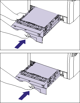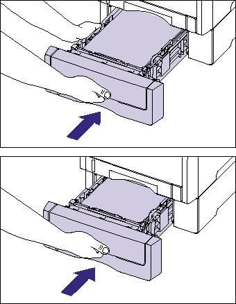 Push the paper cassette into the printer firmly until the front side of the paper cassette is flush with the front surface of the printer.