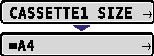 "=" is displayed on the left of the paper size, and the paper size for the paper cassette is specified.