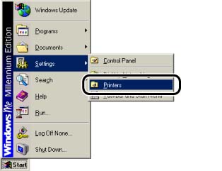 1. From the [Start] menu, select [Settings] -> [Printers].