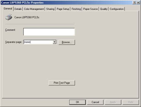 The screen shots used in this section are from Windows Me on which PCL 5c Printer Driver is used.