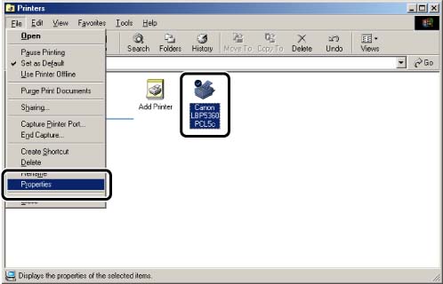 2. Select the icon for this printer, then select [Properties] from the [File] menu.