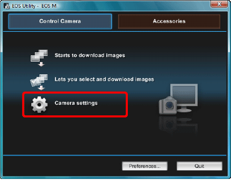 2. Start up EOS Utility, and then click [Camera settings].