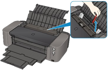 If there are any foreign objects in the rear tray or the manual feed tray, be sure to turn off the printer, unplug it from the power supply, then remove the foreign object.