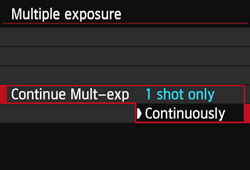 - With [Continuously], multipleexposure shooting continues until the setting in step 2 is set to [Disable].
